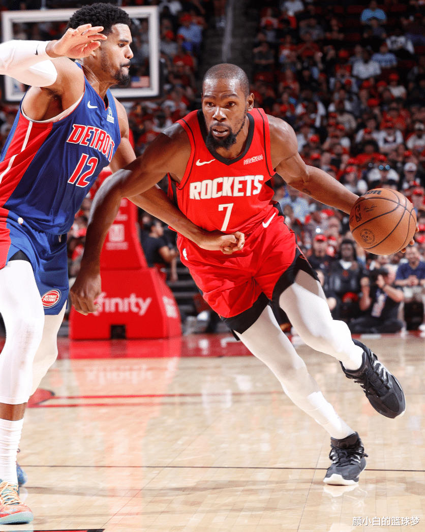 杜兰特此役的上半场也是火箭唯一上双的,17分钟,10中4,三分1中1,罚球7中6拿到15分3篮板1抢断1盖帽0失误,当KD有体能时他就是如此不可阻挡。