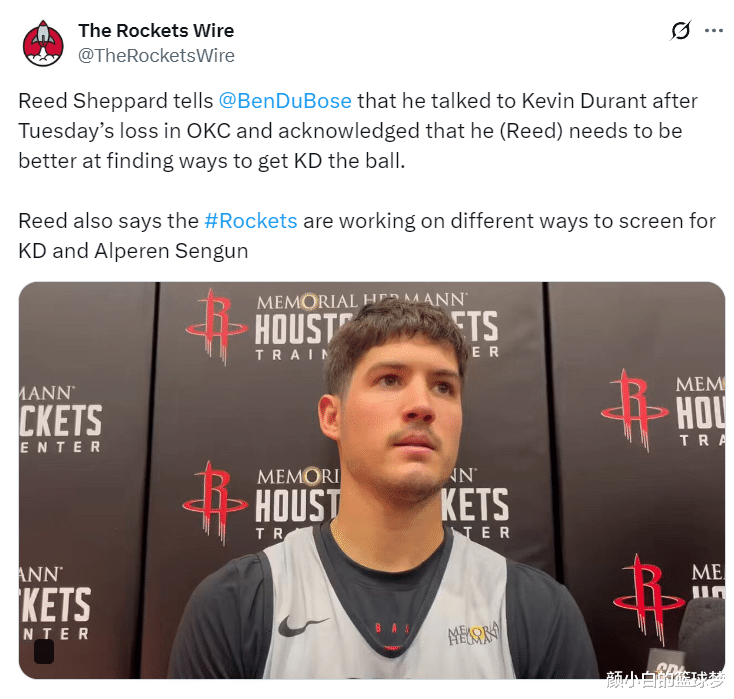 谢泼德在赛前的采访中谈到中金优配,自己应该想到更多办法将球传给杜兰特,火箭队也在研究不同的方法为杜兰特、申京进行掩护。